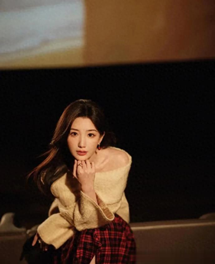 毛晓彤换风格后气质大变! 穿露肩毛衣+格纹半裙, 优雅又高级!