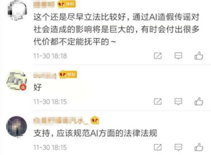 “一些喜欢我影视剧的观众,被AI换脸视频骗得很惨,这个性质非常恶劣。”