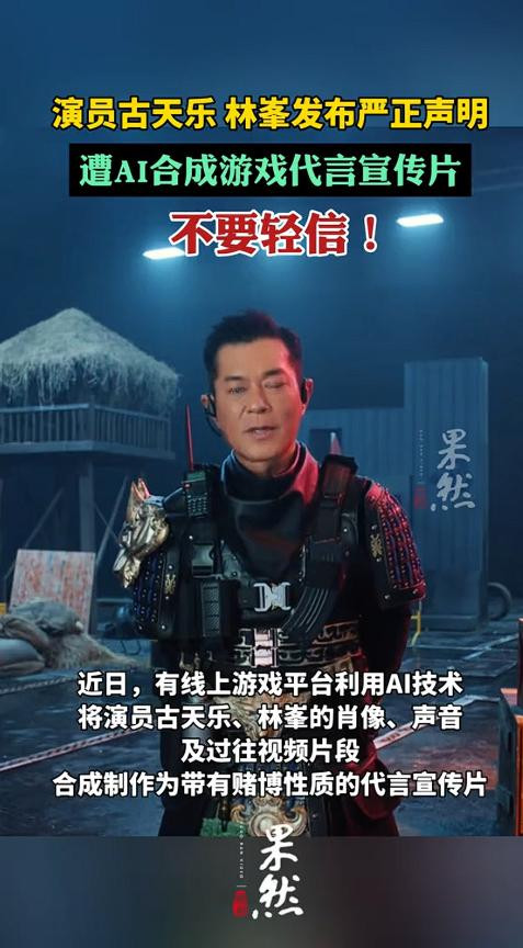 古天乐、林峯等明星的肖像、声音及过往视频片段被线上游戏平台利用 AI 技术,合成为带有赌博性质的代言宣传片。