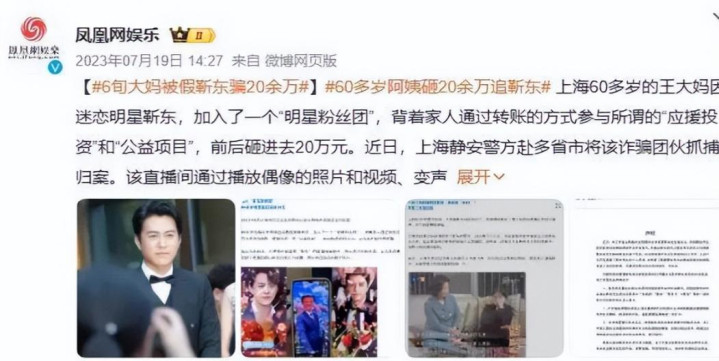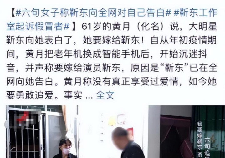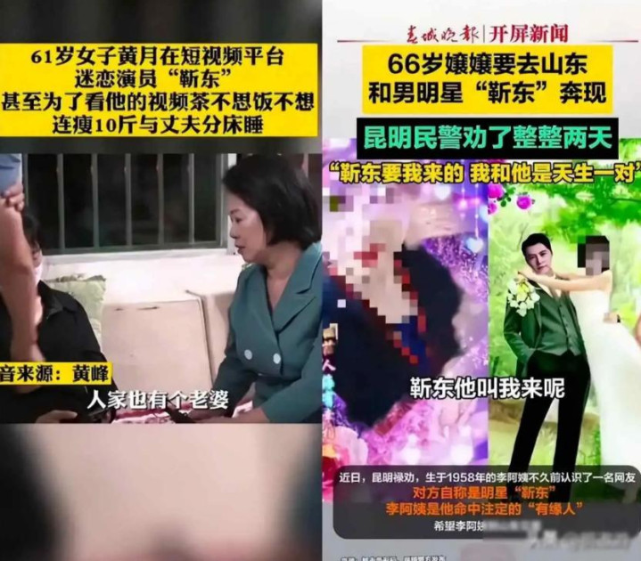 去年11月,江西宜春一位老人就深陷“靳东”情网,称她给自己表白还发布两人合照,需要贷款200万帮他拍戏。