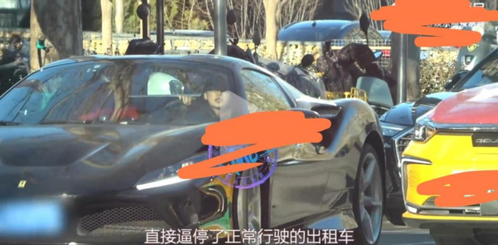 可转头,她就被拍到开着价值400万的法拉利到处逛,还和出租车抢道。