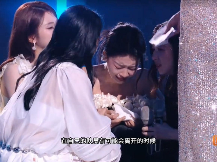 站在舞台上的孙怡,情绪彻底绷不住,她蹲在地上崩溃大哭,不断自责,反复说“是我不好”“是我拖累了大家”。