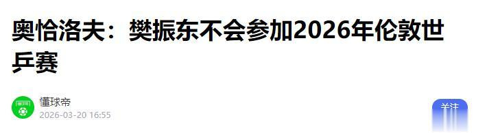 懂球帝官方——奥恰洛夫:樊振东不会参加2026年伦敦世乒赛