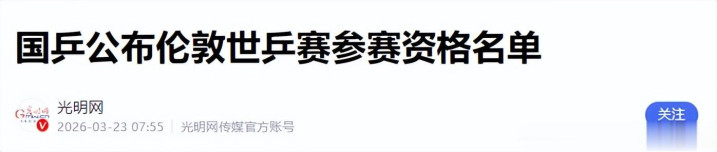 光明网——国乒公布伦敦世乒赛参赛资格名单