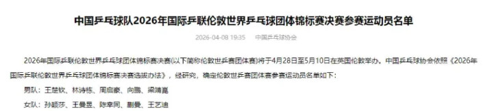 国乒官宣伦敦世乒赛名单: 梁靖崑压哨逆袭, 樊振东不参赛