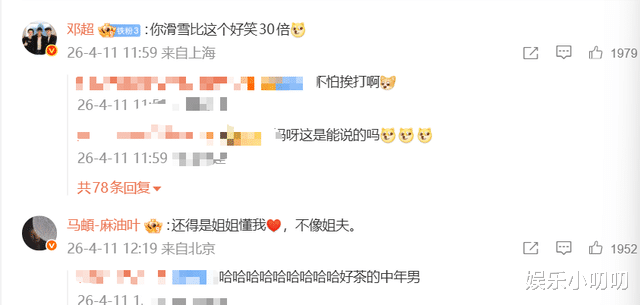 孙俪发文,邓超必定出来作妖,这不超哥果然现身评论区在线拆台:你滑雪比这个好笑30倍!网友们也是被邓超的勇气折服,纷纷表示,这是能说的吗?回家不怕挨打吗?超哥一上头,果然什么都敢往外说呀!最搞笑的是马頔也现身评论区表示:还得是姐姐懂我,不像姐夫。咋感觉马頔在孙俪这还娇羞上了呢。
