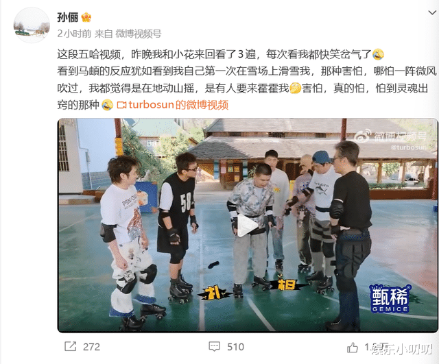 马頔在节目中因为不会轮滑,整个人相当的没有安全感,孙俪用自己滑雪的状态对其进行了共情,表示那种害怕,哪怕一阵微风吹过,我都觉得是在地动山摇,是有人要来霍霍我。孙俪甚至表示那种怕是真的怕,而且是那种灵魂出窍的怕。孙俪的这般形容真的超级贴合马頔的感觉了,虽然别人看着是真的搞笑,但他是真的好怕,哈哈。
